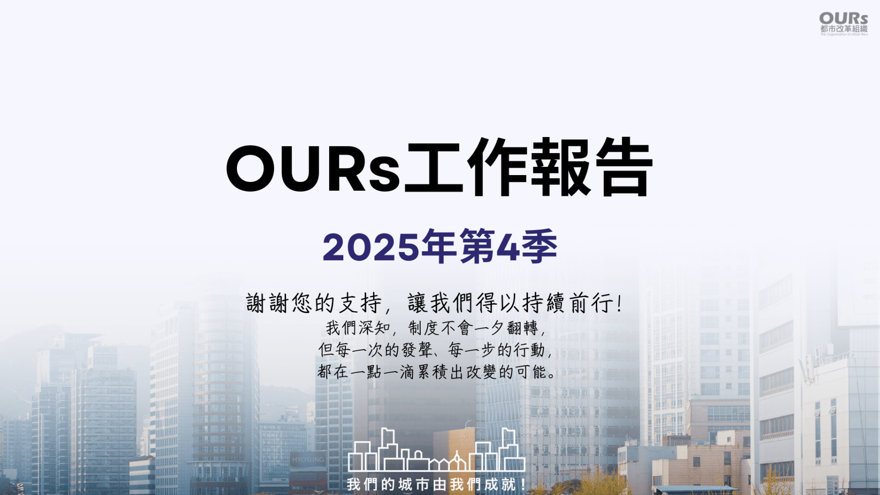 2024年,因應新總統就任與新國會組成,OURs秉持一貫的價值理念,持續推動各項居住政策倡議工作。我們以微型人力規模,盡力推動台灣居住環境的實質改變。
