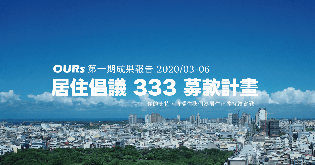自2020年3月起,OURs啟動「居住倡議 3‧3‧3 募款計畫」,期透過細水長流的小額定期捐款款,支持我們的3項居住改革倡議行動。