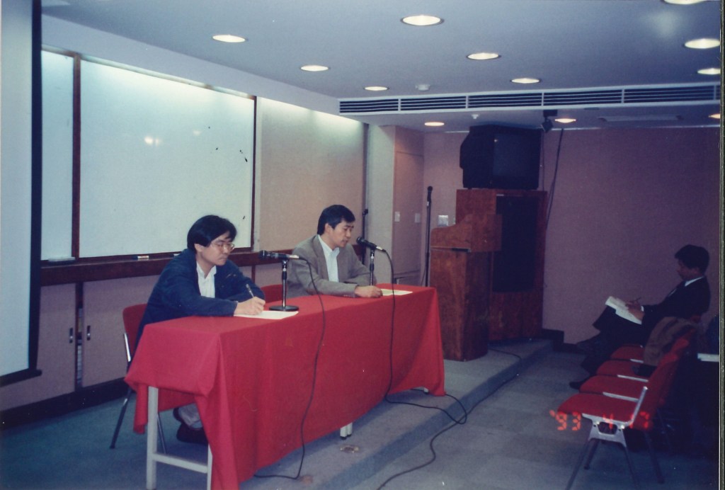 ▲ 1993年,OURs推動「親手造家園-民眾參與的空間規劃設計」系列演講,喻老師是核心成員,照片中令一位是陳志梧老師,現兩人皆已離世,令人感念。