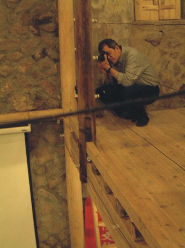 ▲ 2003年,OURs舉辦「一鄉一新房馬祖設計工作營」,喻老師帶領中原建築的學生參與,照片中喻老師正聚精會神在拍照。