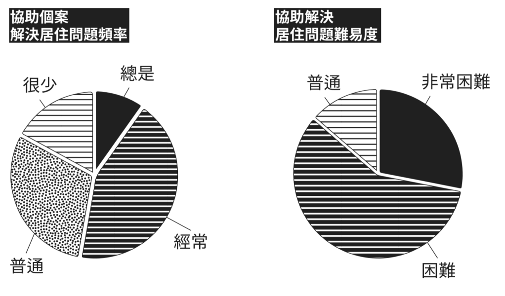 最後也最根本的問題是,住宅補貼資源與社福協助需求落差。對第一線社工而言,經常(52.6%)要協助解決個案居住問題,亦認為住宅資源(83.3%)是社福實務工作的重要工具。但弔詭的是,即便有這些資源,社工多(86.2%)認為協助個案居住還是困難,並主張(82.4%)住宅政策應結合社政部門實務經驗回饋。