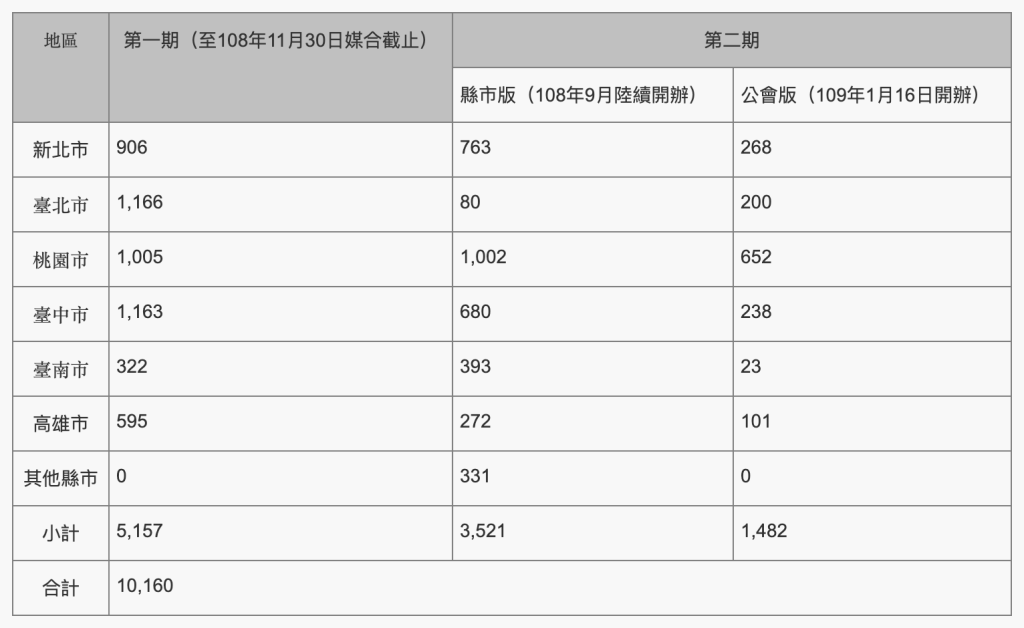包租代管計畫目前已邁入第二期階段,其中較大的差異在於,為了強化租賃住宅服務業蓬勃新生的能量,除維持由縣市政府招標辦理的「縣市版」以外,新加入由國家住宅及都市更新中心與六直轄市之地方公會推出的公私協力「公會版」。兩期的計畫目標共為三萬戶,截至109年8月31日為止,媒合戶數共為10,160戶。