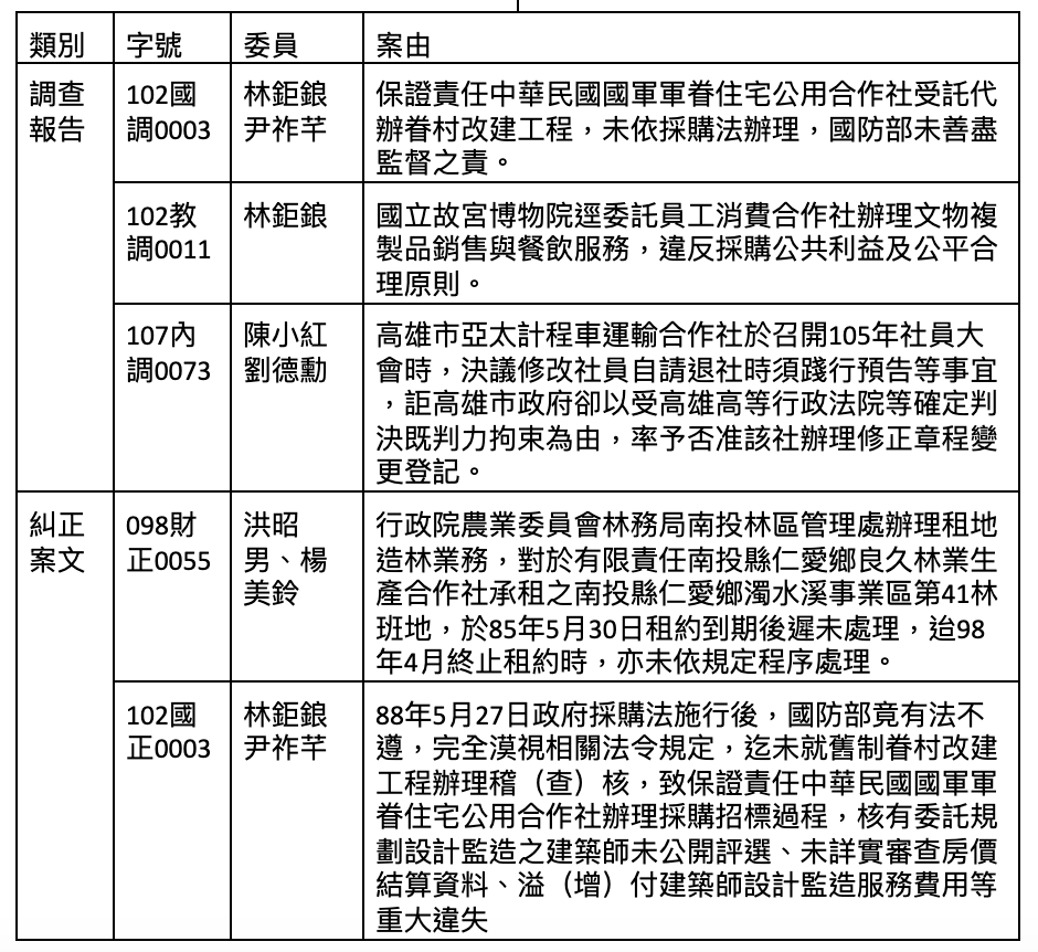 附件三、歷年監察院與合作社相關調查報告、糾正案文等