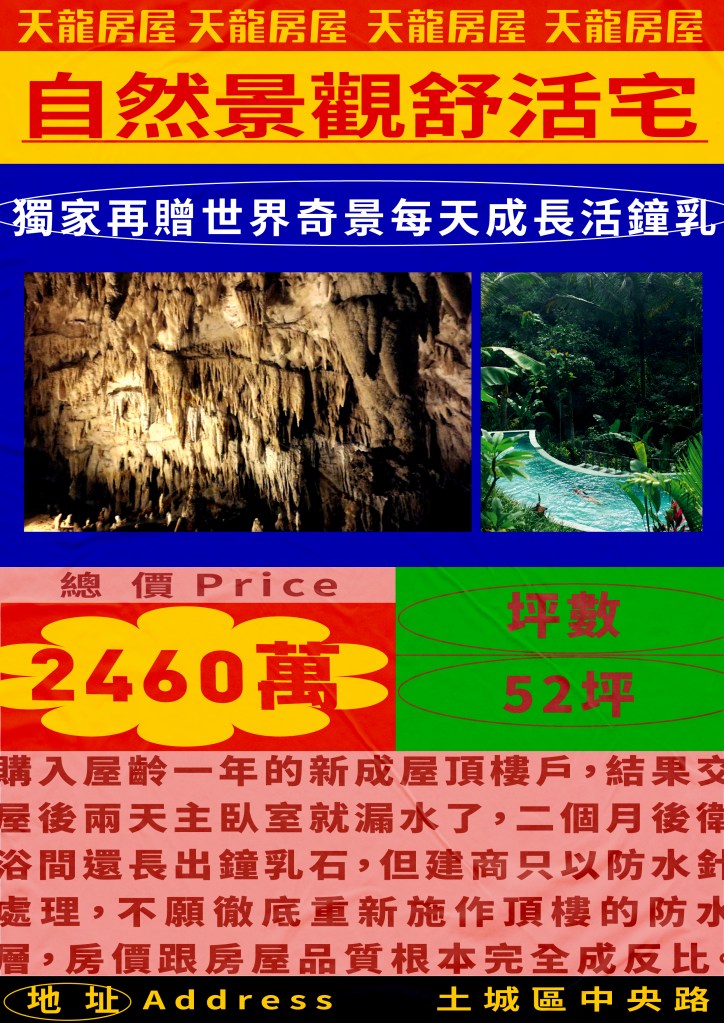 天龍房屋的海報將反其道而行,如網友黃先生表示,他省吃儉用買的2460萬新成屋,交屋才兩天就漏水,兩個月後更長出鐘乳石,在天龍房屋的海報當中就成為了「獨家再贈世界奇景,每天成長活鐘乳」;而花八千元在大安區只能租到一個上鋪的繭居房,變成「八千入住蛋黃區」;公設比近五成、開門即是流理臺的千萬房,變成「防疫生活從進門做起」。這些經驗都用詼諧諷刺的方式,成為天龍房屋獨特的「居住心聲海報」,成為讓網友笑中帶淚的黑色幽默。