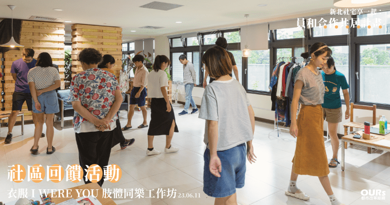 6月11日,土城員和青年社會住宅「中島美家」繼3月舉辦完以「食」為主題的社區回饋活動後,本次以「衣」為主題舉辦「衣服 I WERE YOU 肢體同樂工作坊」。活動邀請到講師莊知耕引導住戶及社區學員,帶一件與平常自身穿衣風格不同的衣服,藉由工作坊重新發現自己新的可能性。