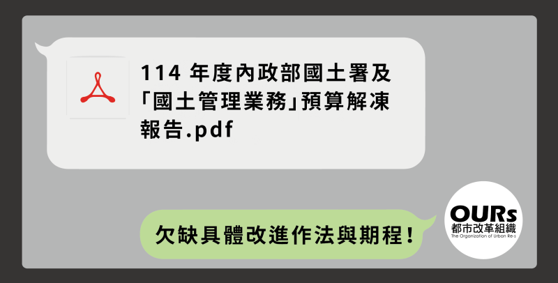 OURs認為,內政部的報告過於簡略籠統,多採「會持續努力,請趕快解凍」說法,具體改進方案與預計進度期程語焉不詳,難以檢核是否能落實。